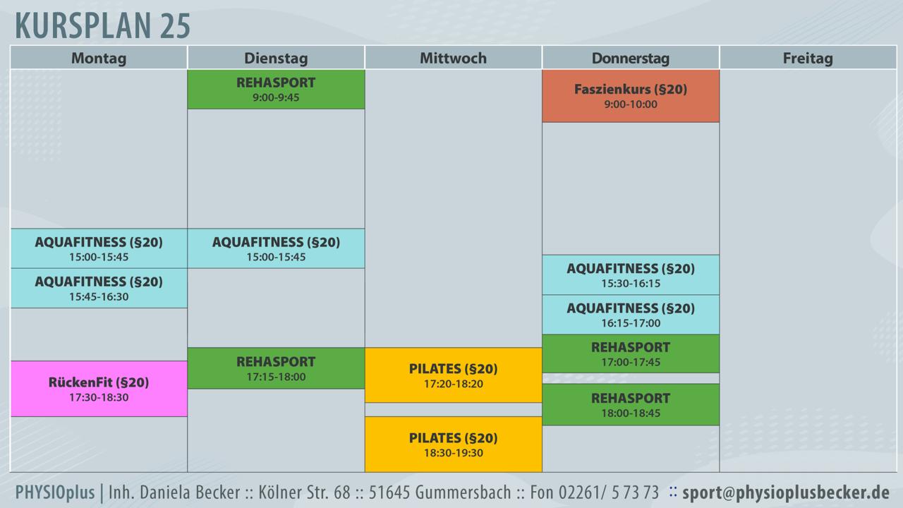 Monatliches Gerätetraining nach Einweisung Präventionskurse nach §20: Aquafitness, Pilates, Faszientraining, Rückenfit, Autogenes TrainingYoga